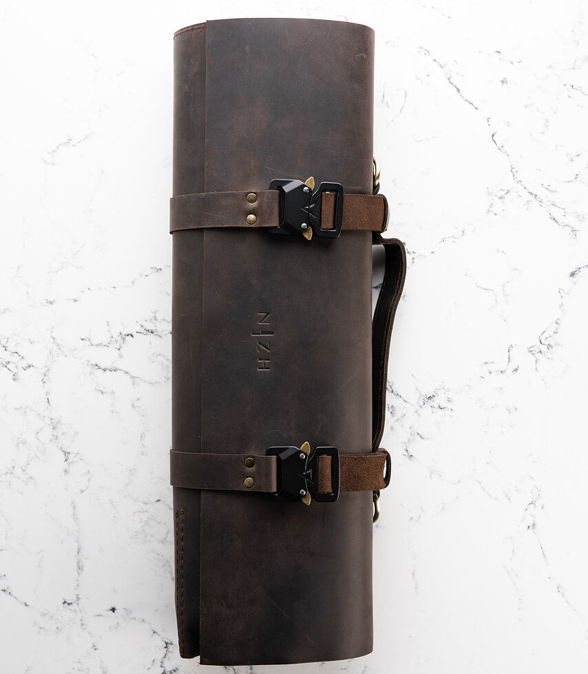 The One L is designed for chefs who carry the full set. Its 16 knife slots provide ample space for all essential knives, while 6 mini pockets hold small tools such as tweezers or spatulas. Stylish, durable, and meticulously crafted, the One L is an indispensable companion for those who work with a complete set of tools and want to be ready for any challenge.